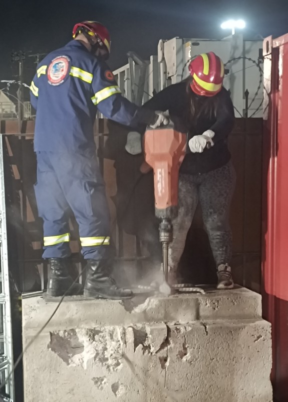 Κατά τη διάρκεια του μαθήματος τα μέλη του τμήματος ήρθαν σε επαφή με κομπρεσέρ βαρέως τύπου καθώς και με τροχούς αδιατάραχτης κοπής σκυροδέματος, εργαλεία ιδιαίτερα σημαντικά για επιχειρήσεις διάσωσης σε περιβάλλοντα καταρρεύσεων και καταστροφών.